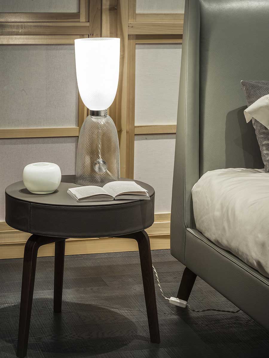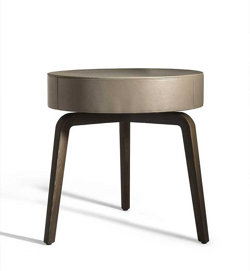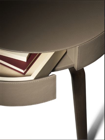 Прикроватная тумба Fiorile от дизайнера Roberto Lazzeroni с основанием из массива ясеня в цвете mokko и столешницей, в эксклюзивной коже Pelle Frau® ColorSphere®. CS33 Travertino.