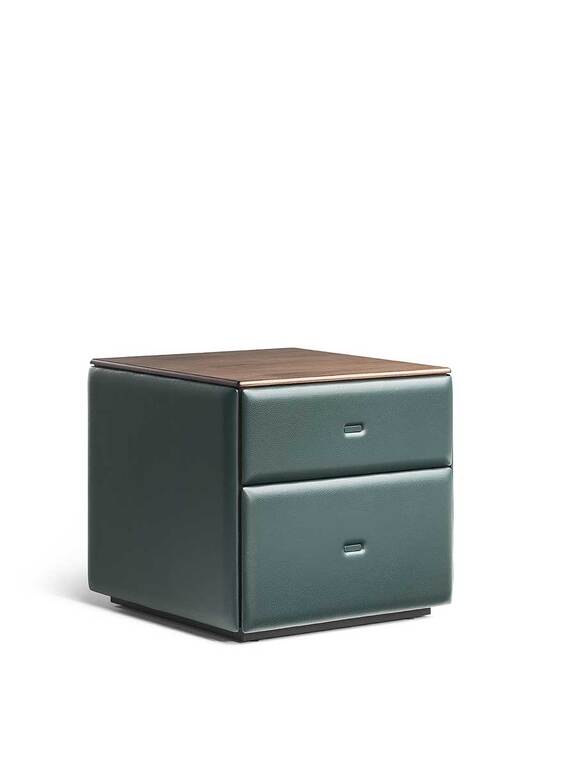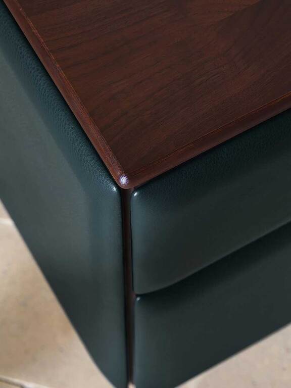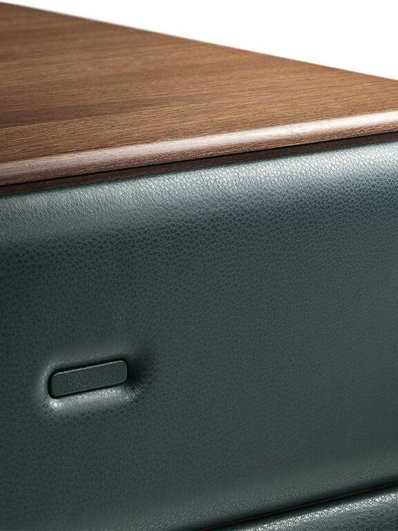 Опорная конструкция мебели Moondance изготовлена из фанеры тополя с отделкой из массива ореха Каналетто. Задняя панель доступна в двух вариантах: с отделкой шпоном ореха Каналетто или обтянутая кожей Pelle Frau®. Корпус ящиков выполнен из МДФ с отделкой шпоном ореха Каналетто, а фасады — из березовой фанеры. Обивка из кожи Pelle Frau® дополнена полиуретановой набивкой. Стальные ножки с регулируемыми пластиковыми защитными наконечниками обеспечивают надежность и устойчивость.