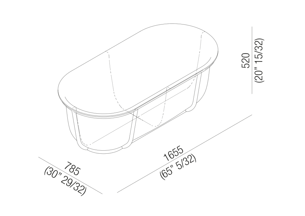 165,5 х 78,5 x h 52 см.