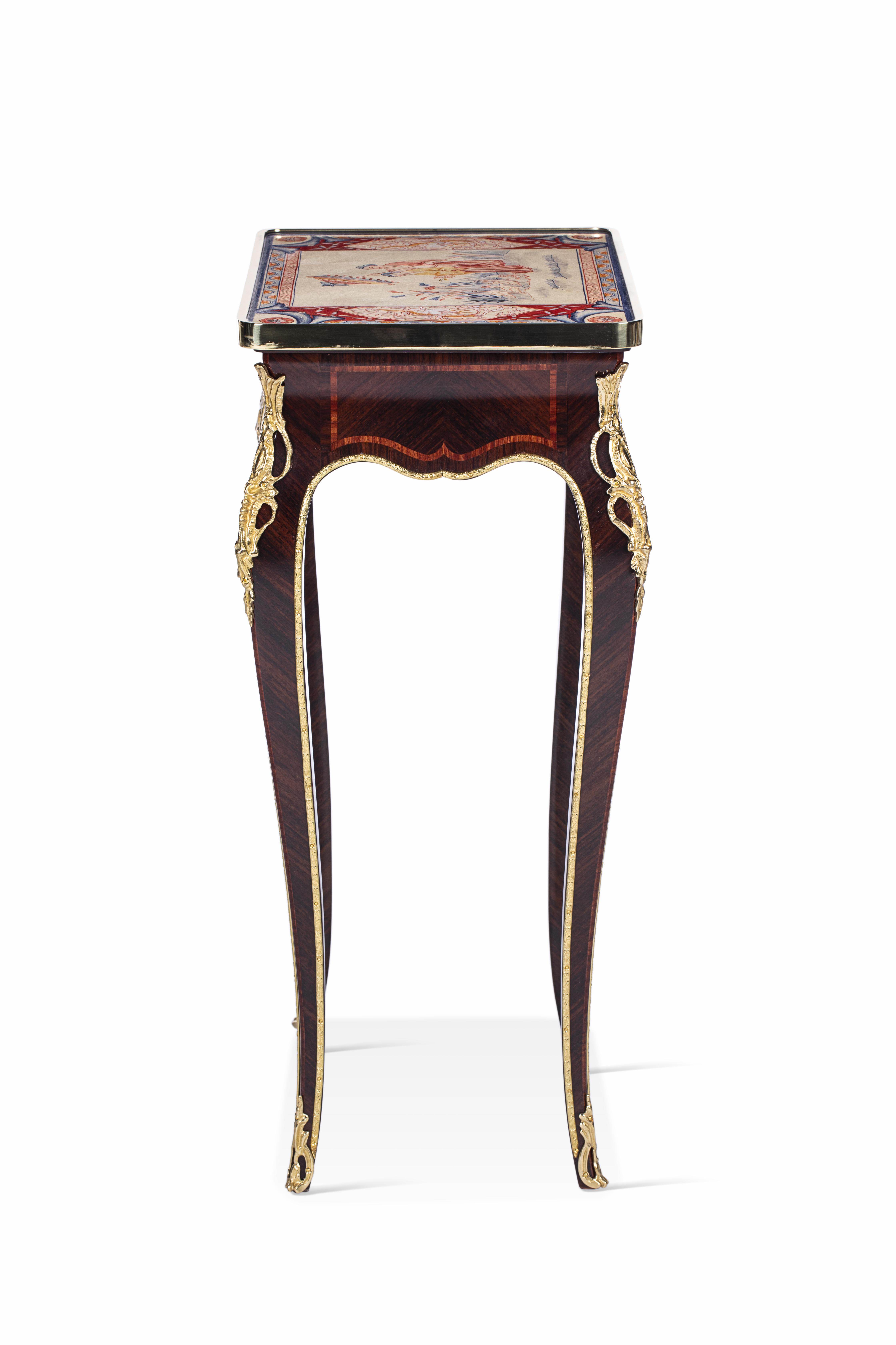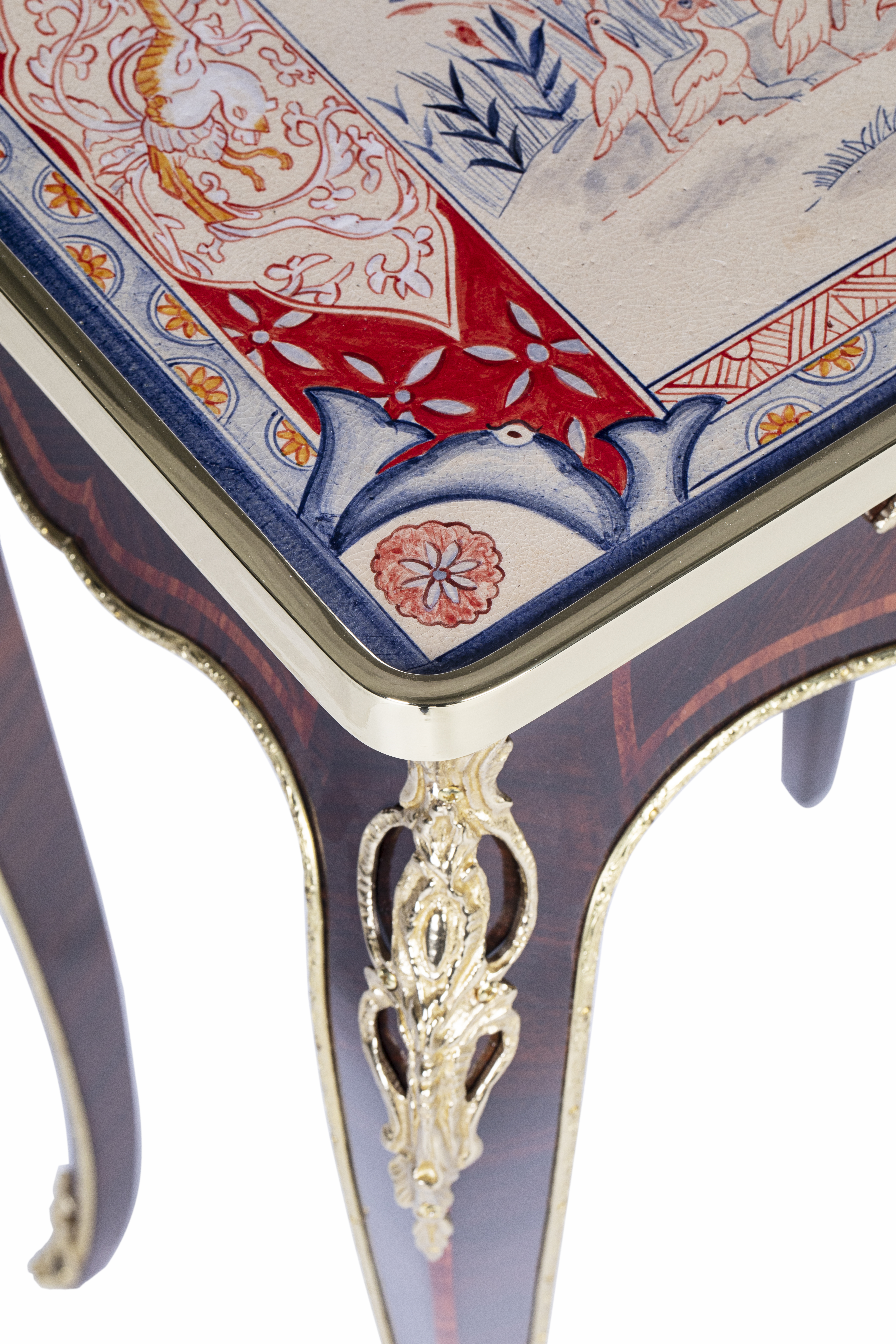 Журнальный столик в стиле Людовика XV, декорированная керамическая столешница и латунный край. Также доступен вариант с глянцевой столешницей Full Gloss.ОТДЕЛКА palissandro +