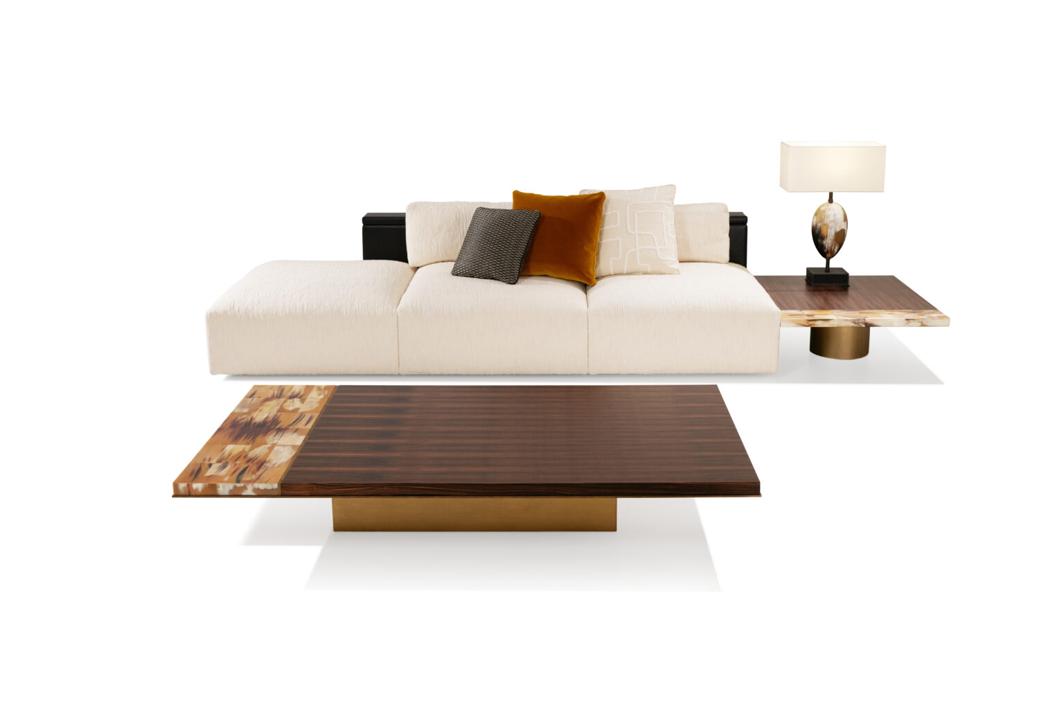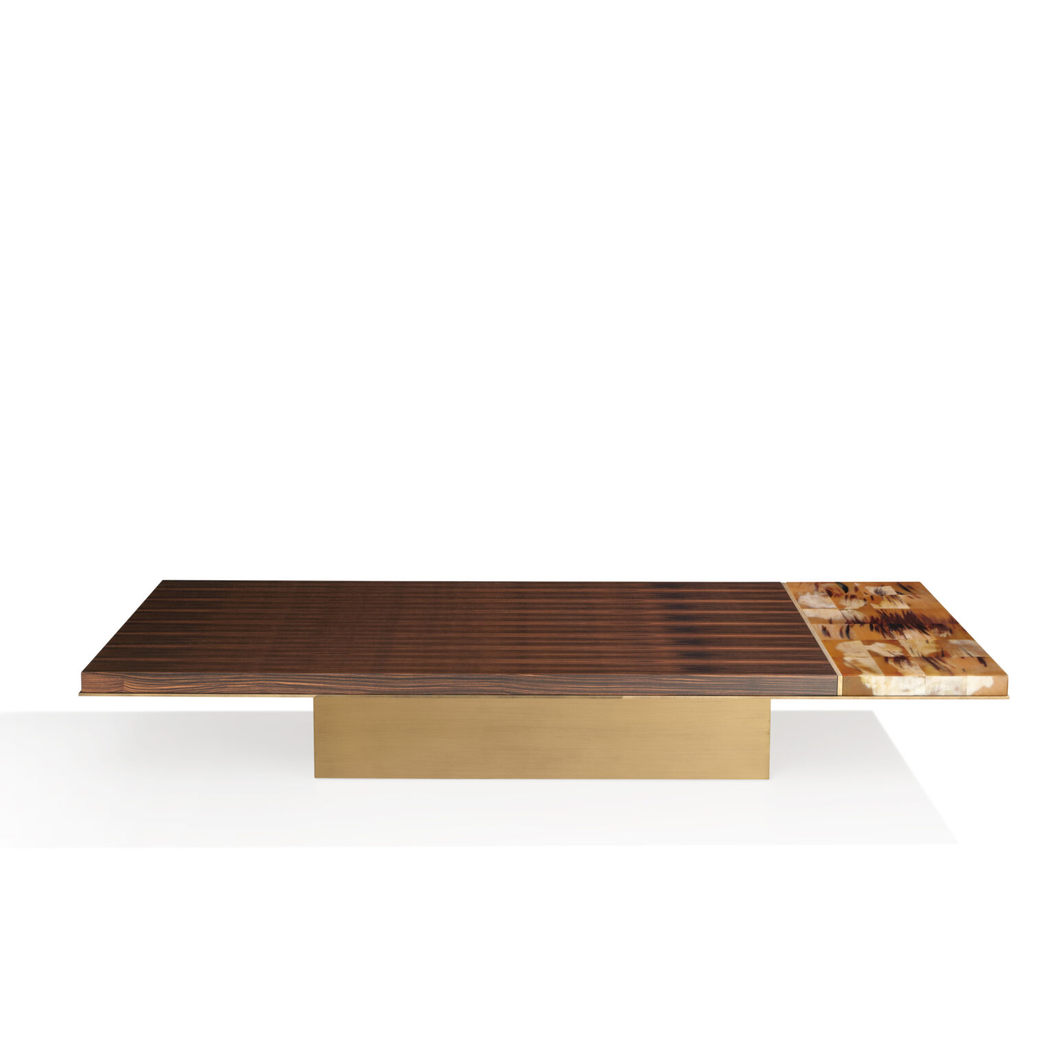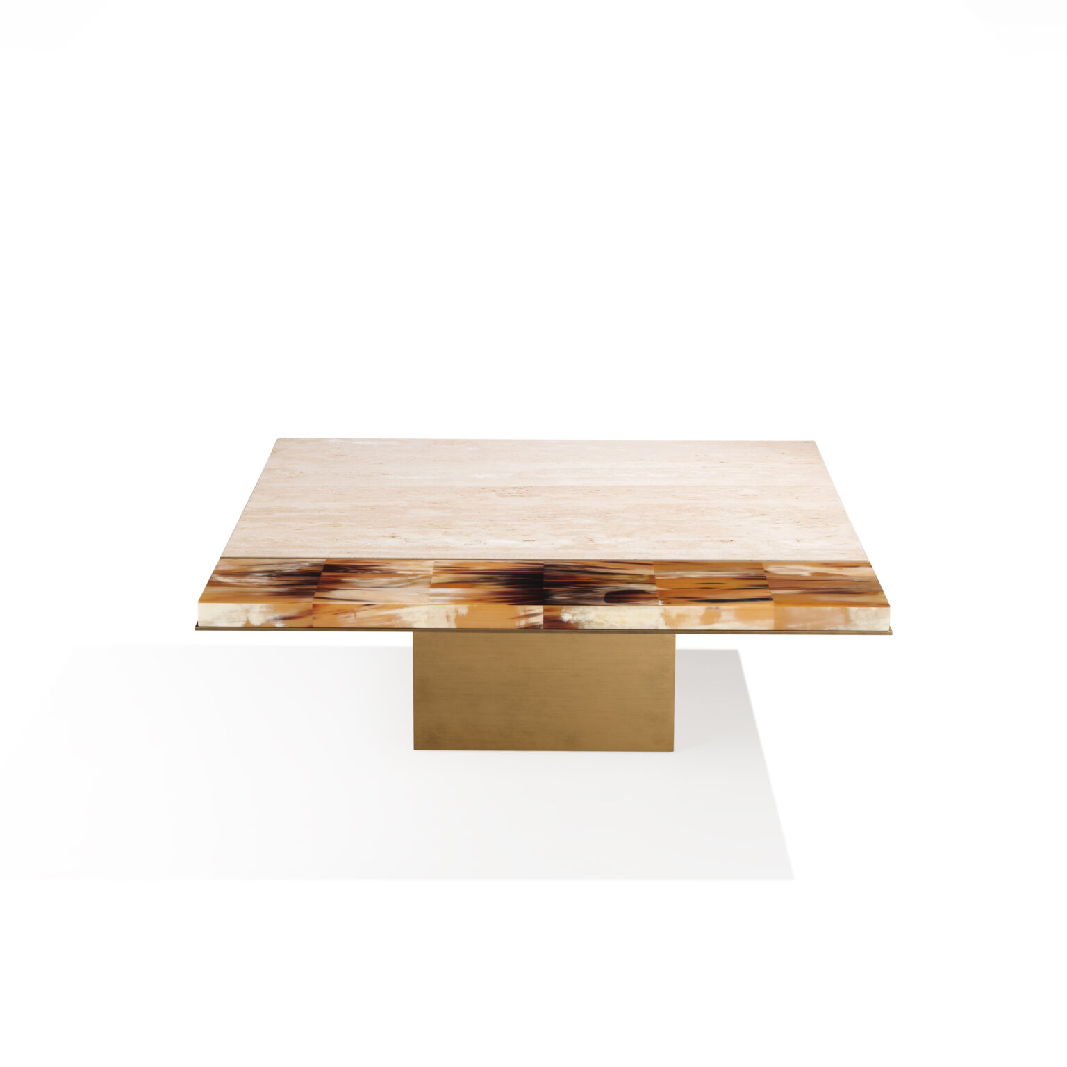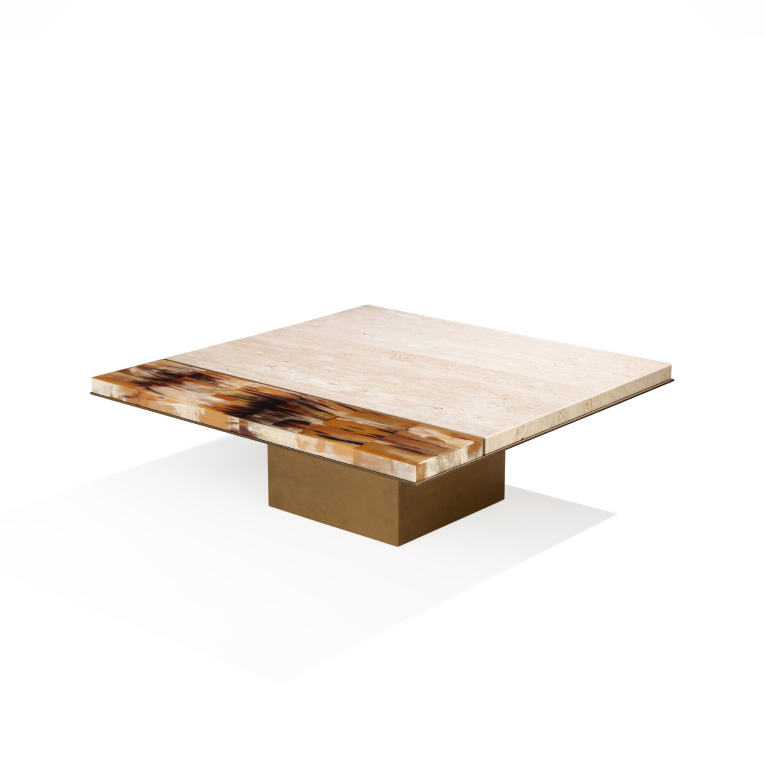 Изысканные материалы и чистые линии гармонично сочетаются в Andria – журнальном столике, воплощающем силу природы и исключительное мастерство. Уникальная квадратная столешница из пористого травертина Navona опирается на основание из патинированной латуни и украшена утончённой деталью из натурального рога с глянцевой отделкой. В прямоугольной версии, выполненной из макассарского эбена, столешница дополнена изысканными вставками из полированного рога, создающими эффектный контраст с матовой текстурой дерева. Каждая деталь, искусно обработанная мастерами, рассказывает историю ремесленного искусства и придаёт столу неповторимую элегантность.