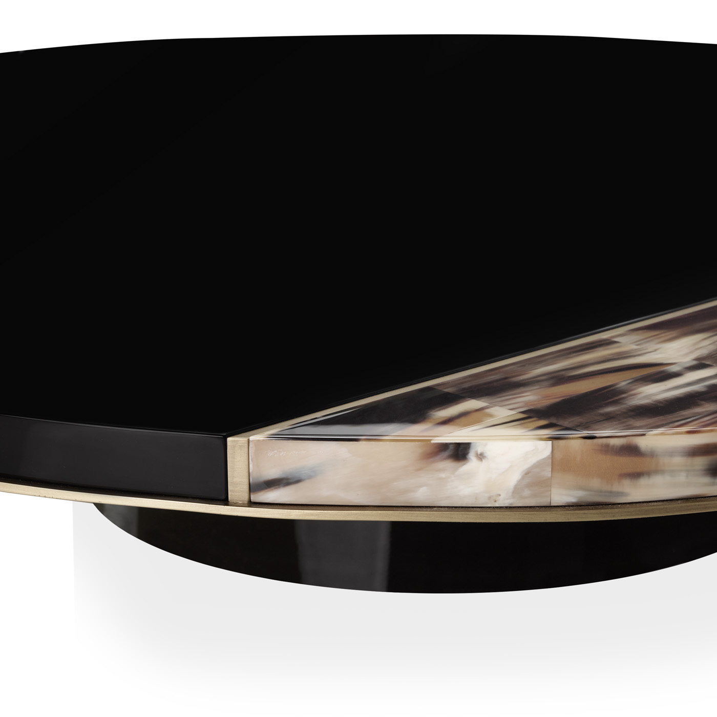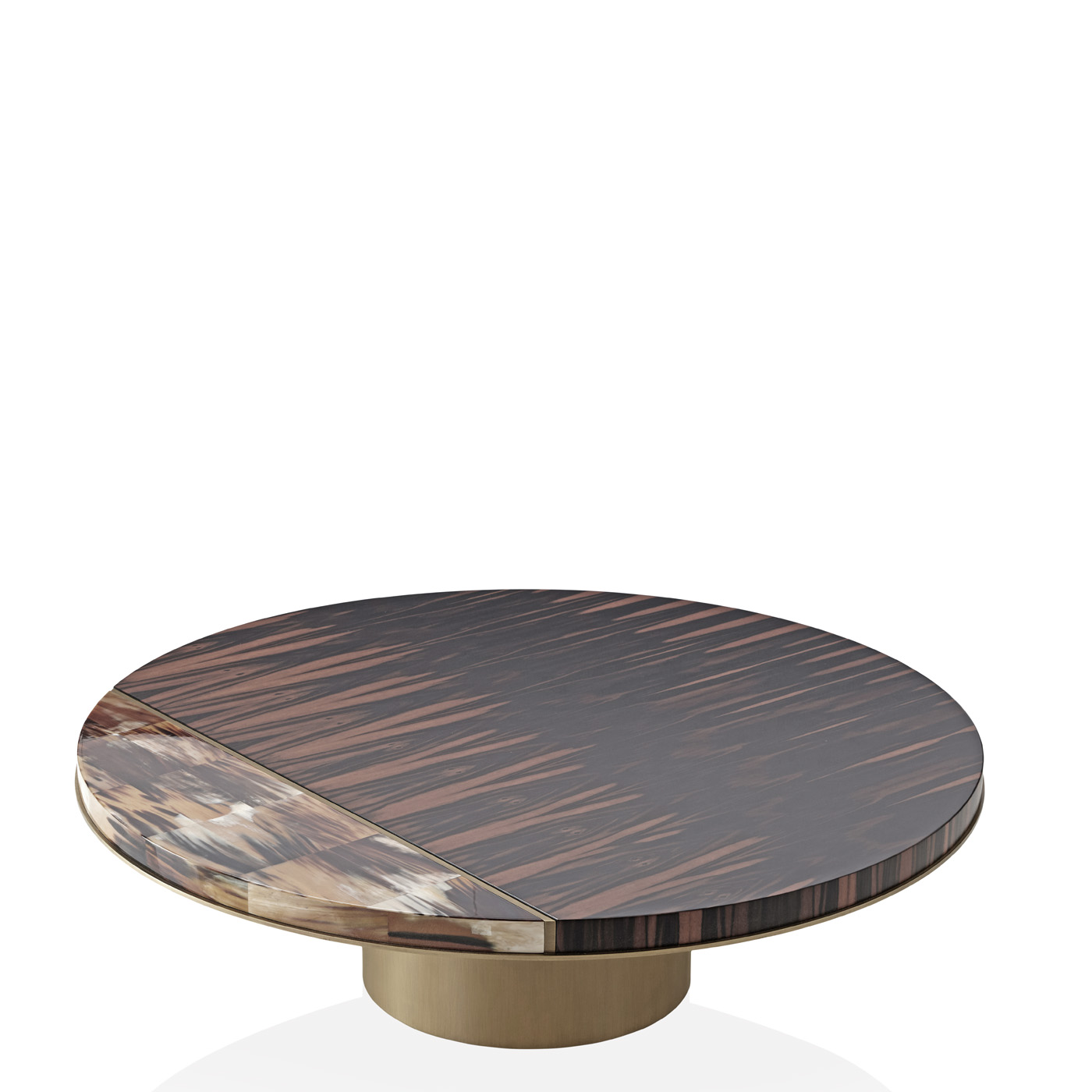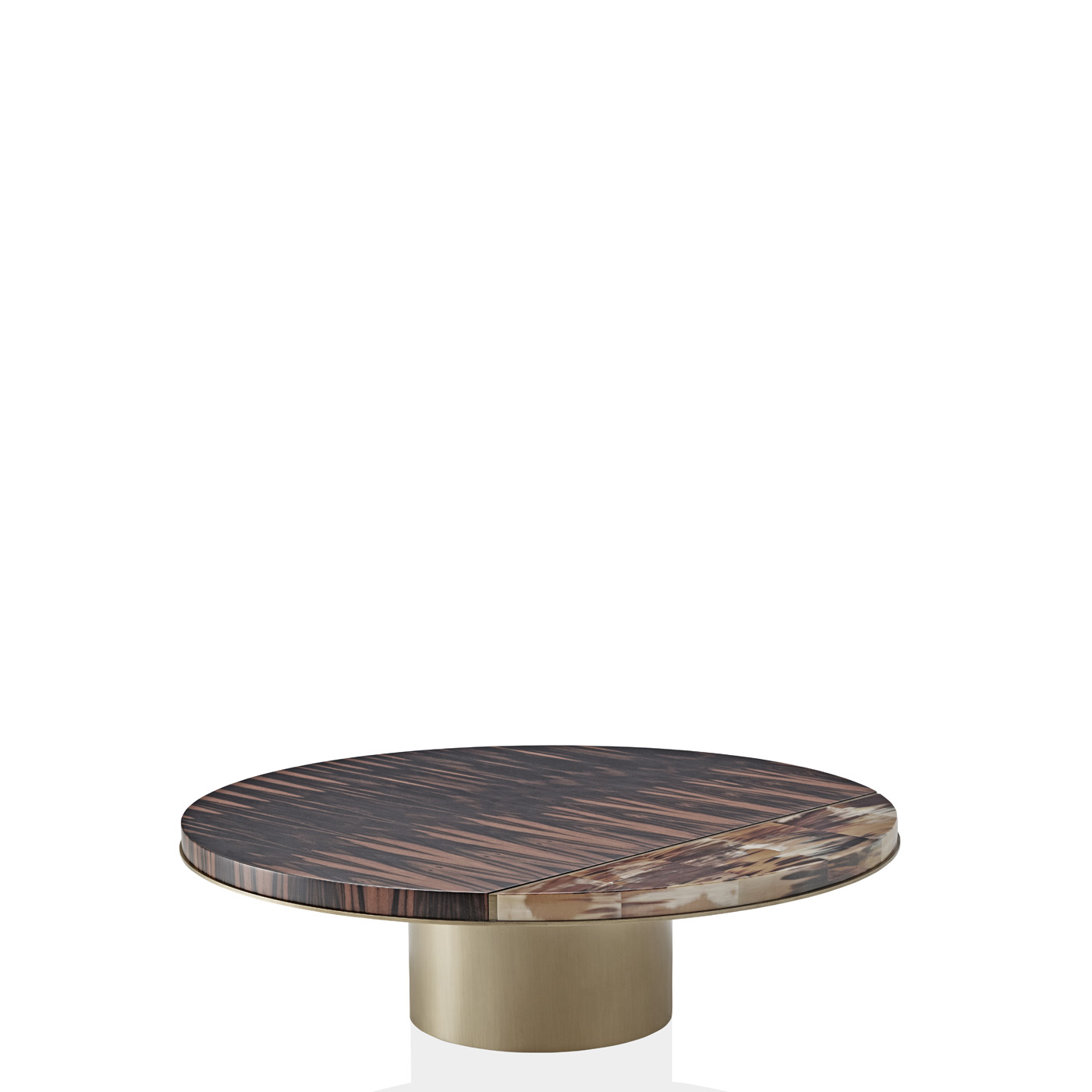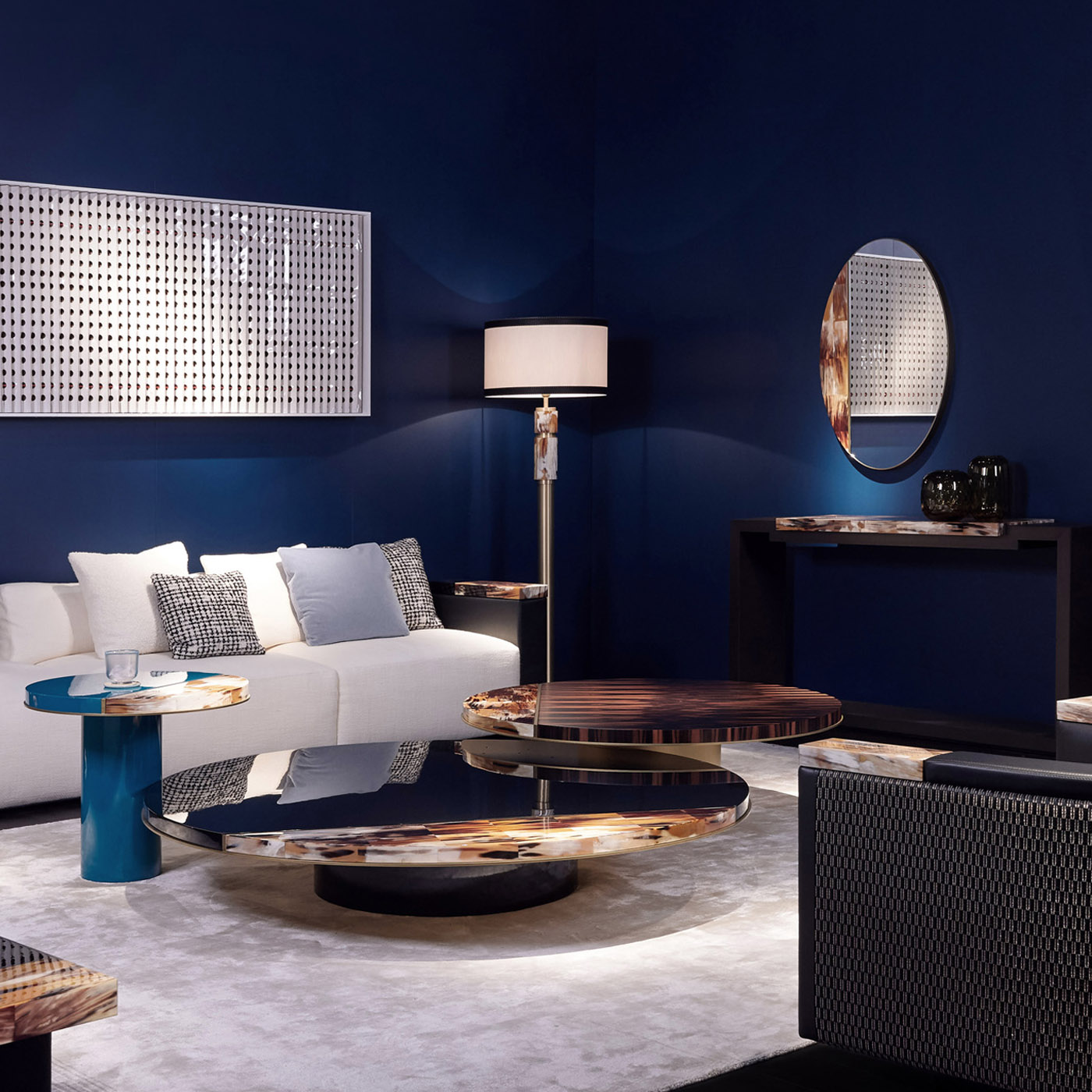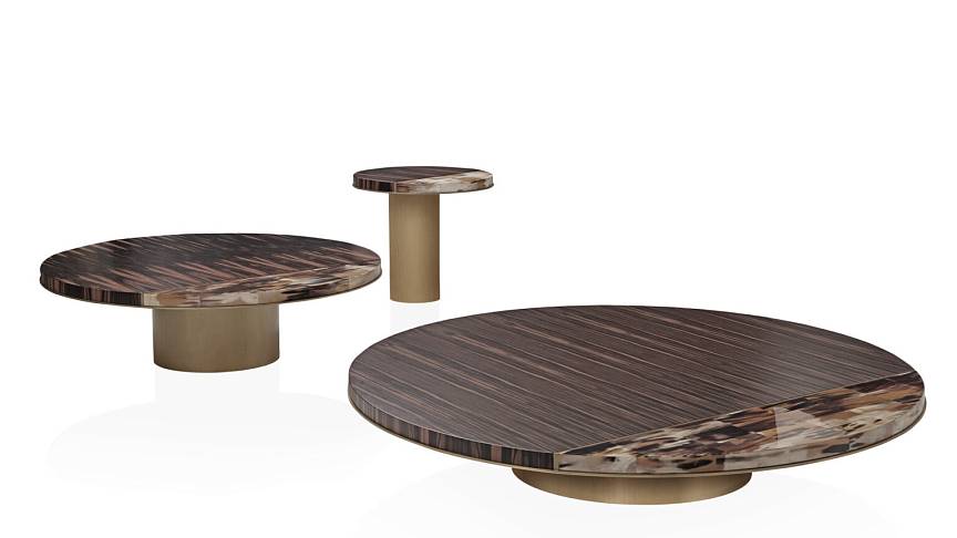 Изысканные материалы и чистые линии гармонично сочетаются в Andria – журнальном столике, воплощающем силу природы и исключительное мастерство. Уникальная квадратная столешница из пористого травертина Navona опирается на основание из патинированной латуни и украшена утончённой деталью из натурального рога с глянцевой отделкой. В прямоугольной версии, выполненной из макассарского эбена, столешница дополнена изысканными вставками из полированного рога, создающими эффектный контраст с матовой текстурой дерева. Каждая деталь, искусно обработанная мастерами, рассказывает историю ремесленного искусства и придаёт столу неповторимую элегантность.
