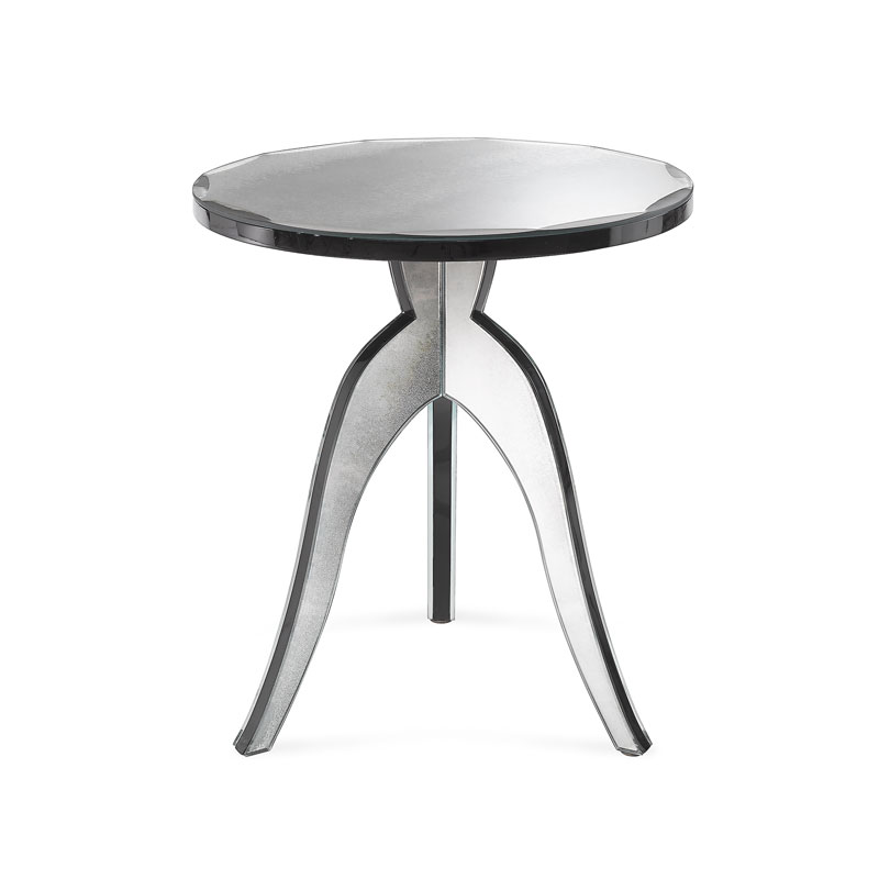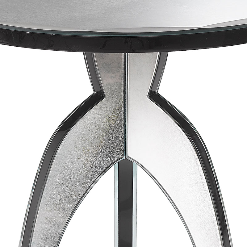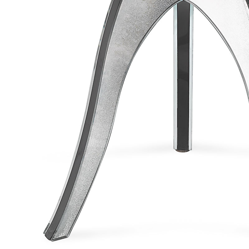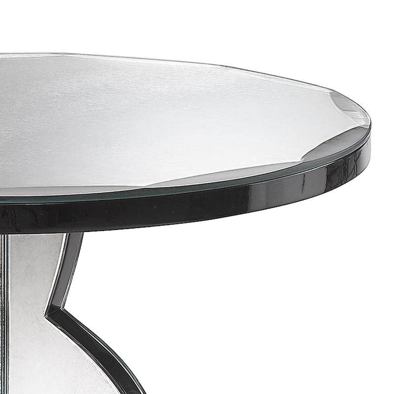 Каркас выполнен из дерева с черным блестящим лаковым покрытием. Круглая столешница из зеркального стекла с гравировкой