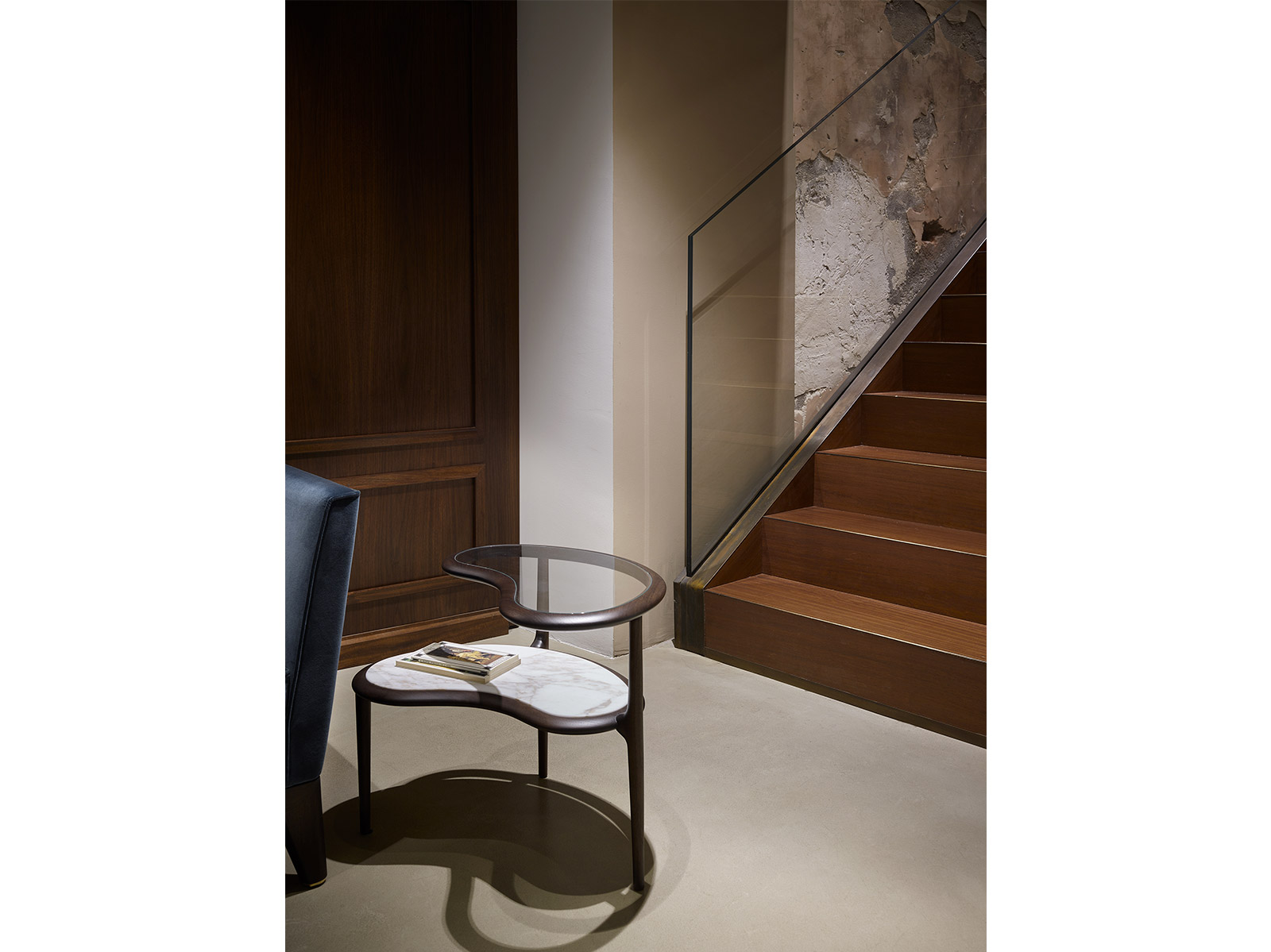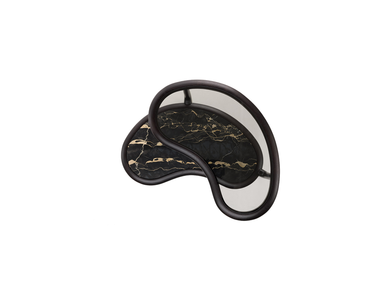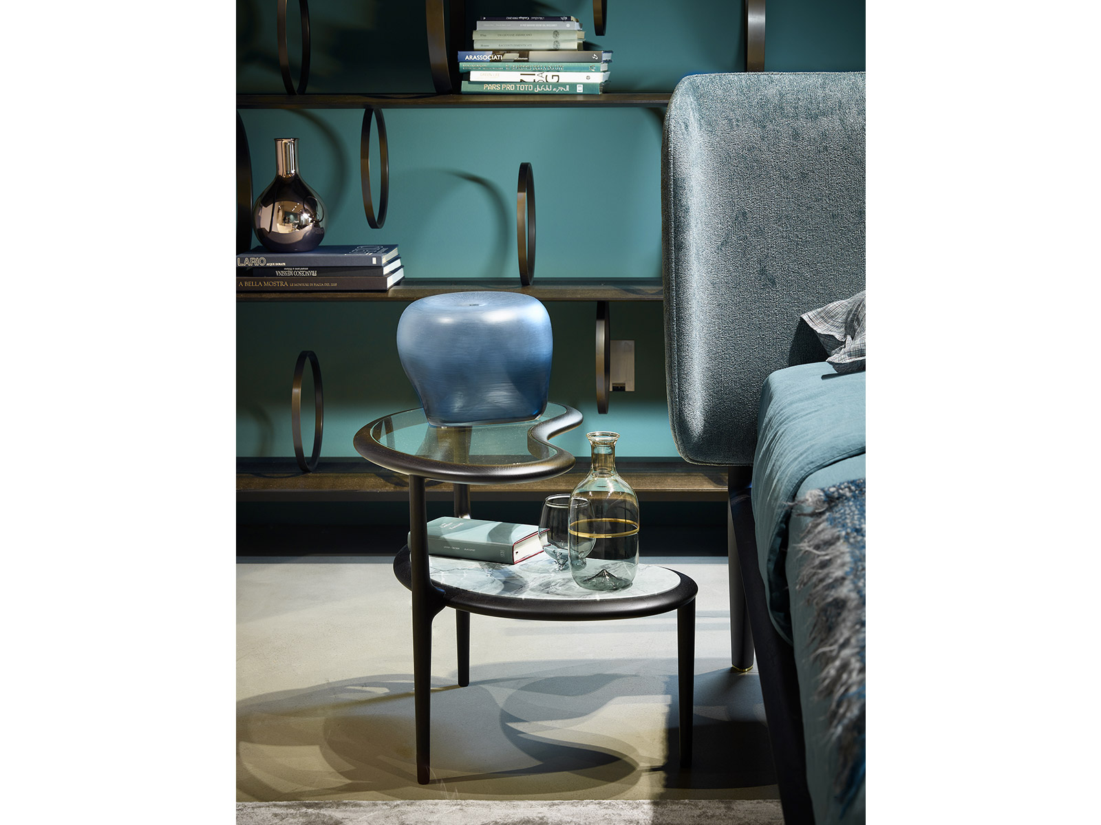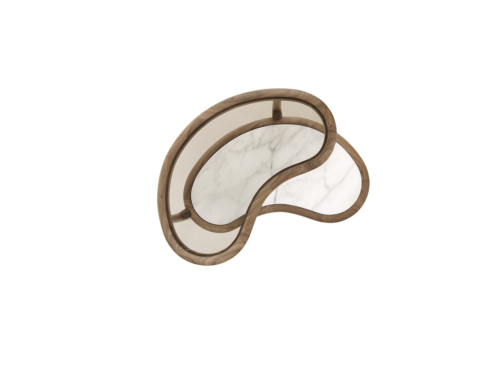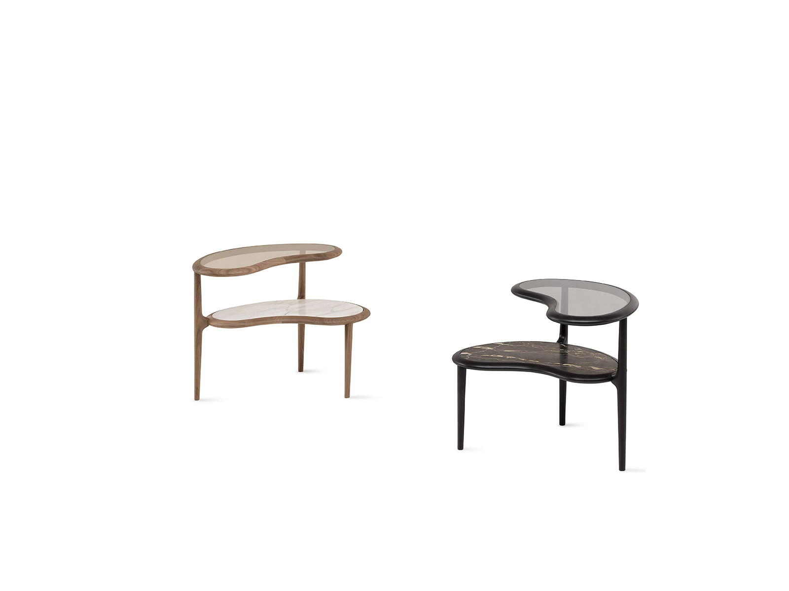 Декоративный, но функциональный. Этот журнальный столик можно использовать как выдающийся визуальный элемент, так и как средство организации пространства. Fagiolo был разработан Лаццерони в 2014 году как «спутник» кресла Saturn. Оба эти предмета были созданы для уголка для чтения, известного как «Сатурн и сыновья», в который также входила лампа Лампо. Этот мини-люкс был создан для помещений дома, предназначенных для отдыха и релаксации, где Fagiolo является очень практичным дополнением. Его название означает «боб» и вдохновлено органичной формой двух этажей. Каркас изготовлен из массива американского ореха в четырех возможных цветах, перечисленных в списке, а также с дополнительной отделкой шеллаком. Двойная столешница доступна из прозрачного, бронзового или дымчатого стекла толщиной 4 мм. Альтернативно нижняя полка может быть выполнена из мрамора, а верхняя – из стекла.