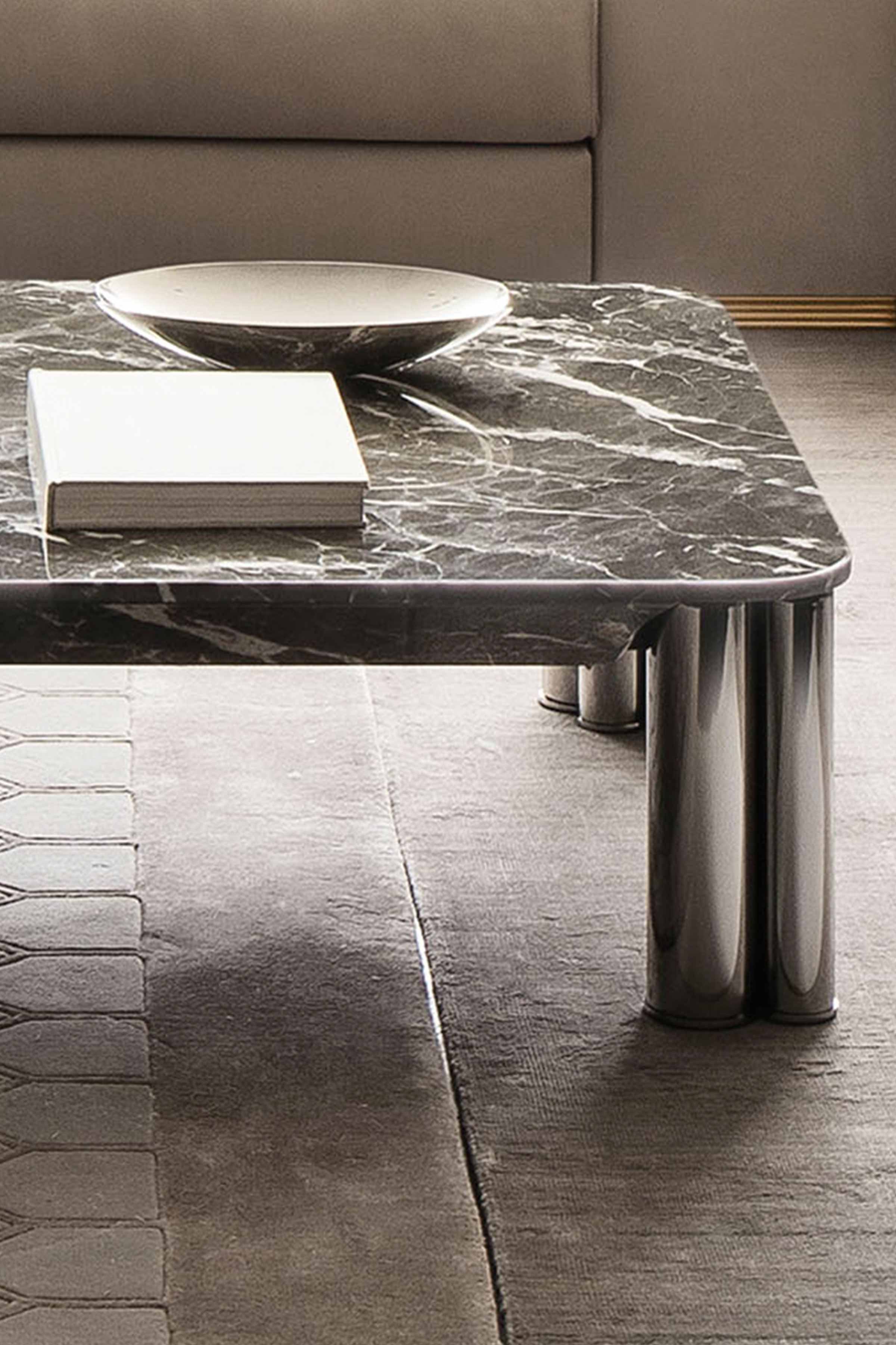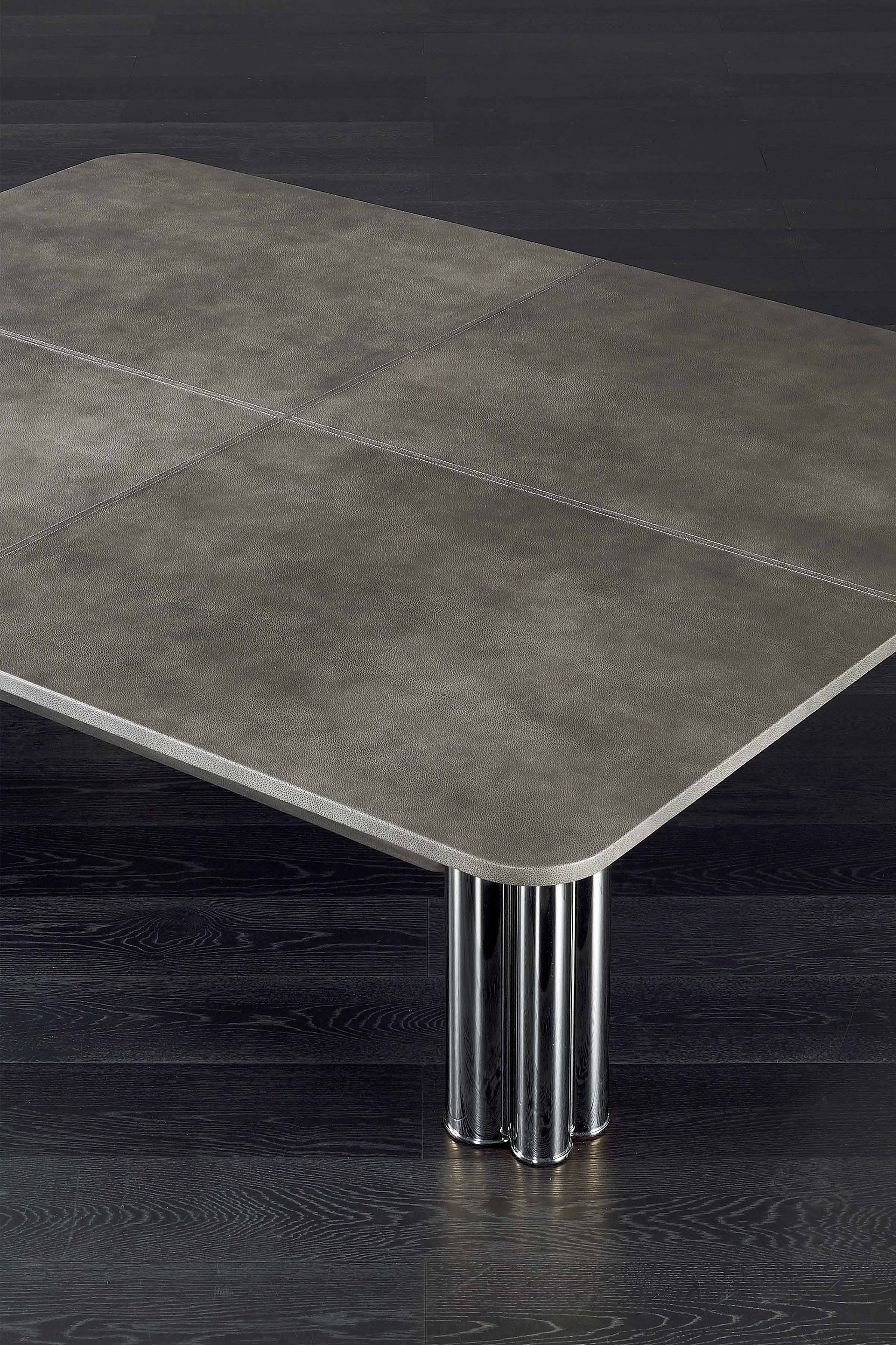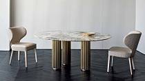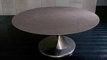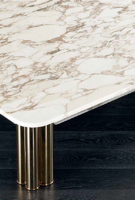 Металлическое основание в отделке черный хром или золото. Столешница декорирована художественной росписью Decoro вручную, может быть отделана кожей, выполнена из дерева Ebony или из мрамора.