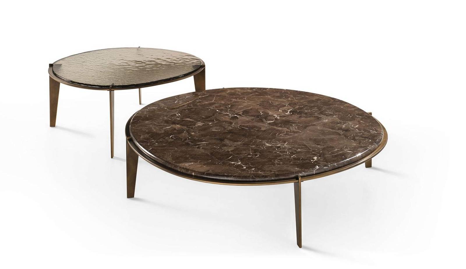 Журнальный столик Halo со стеклянной столешницей и металлической структурой, крашенной в цвет ottone brunito.
