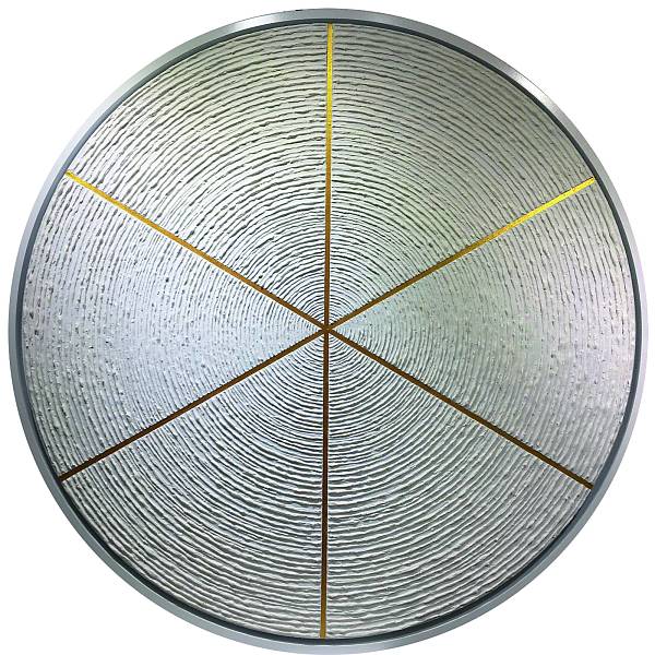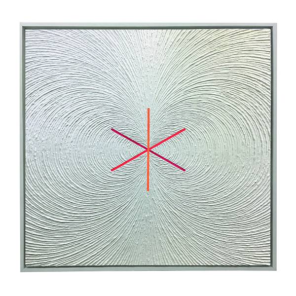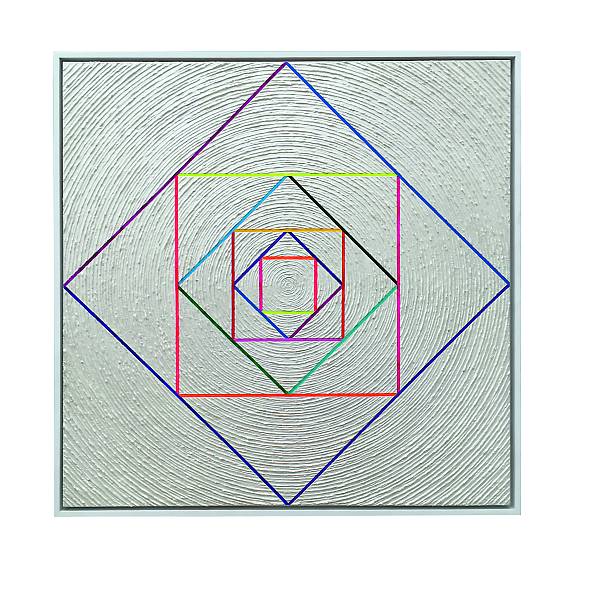 Знаменательным в утверждении связи Систематизма и поисков художников Русского Авангарда начала прошлого века является выбор белого фона как символа бесконечного пространства. Андрей Верещагин выбирает лаконичные цветовые решения на фоне вибрирующего фактурного белого, или условно белого – золотого или серебряного, холста. Причем фактура холста доведена до барельефа, создающего линии энергетических потоков, вибраций, призванных гармонизировать пространство и зрителя.