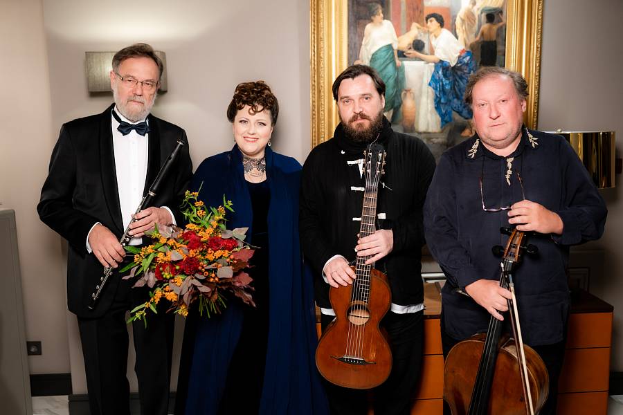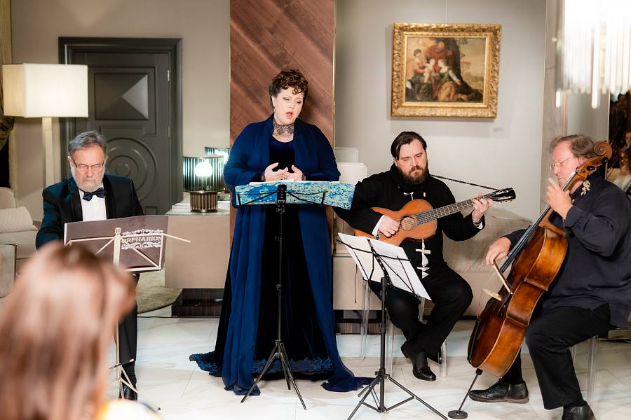Камерный вечер, который был посвящен открытию новой художественной экспозиции арт-галереи Mobillissimi, собрал наших друзей и коллег и подарил возможность насладиться сопрано Яны Иваниловой (Заслуженная Артистка России) в сопровождении музыкального трио: флейты (Заслуженный Артист России - Олег Худяков), теорбы - романтической гитары (Олег Бойко) и виолончели (Андрей Спиридонов).