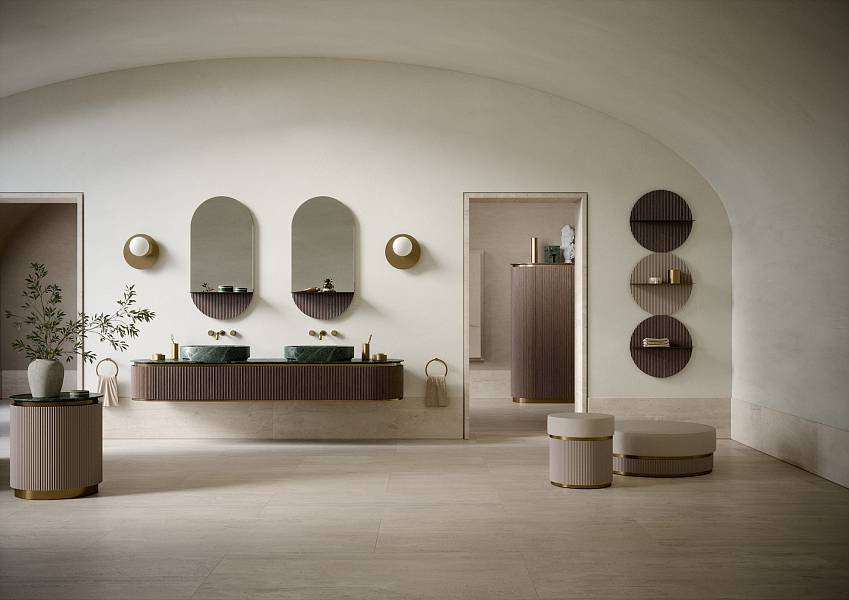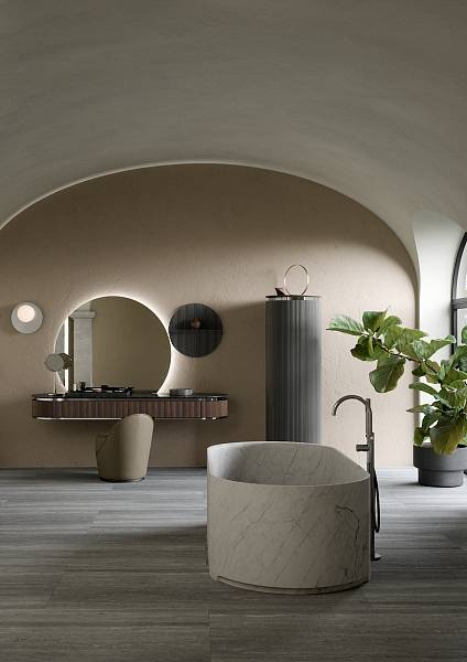 Коллекция Nàos вдохновлена круглыми формами древнегреческой архитектуры и скульптурой классических храмовых зданий. Название Nàos восходит к Древней Греции и обозначает самую священную внутреннюю часть храма. Отдавая дань уважения сакральному и нерукотворному, коллекция превращает ванную комнату в особое пространство, где можно уединиться, чтобы обновить тело и дух.