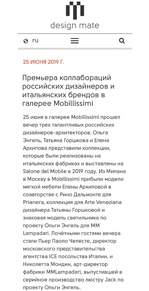 Design Mate Светская хроника / Премьера российских дизайнеров в Mobillissimi