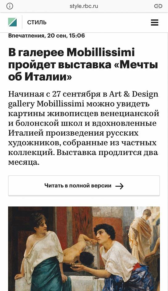 РБК Стиль / В галерее Mobillissimi пройдет выставка "Мечты об Италии""