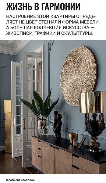 Настроение этой квартиры определяет не цвет стен и форма мебели, а большая коллекция искусства - живописи, графики и скульптуры.