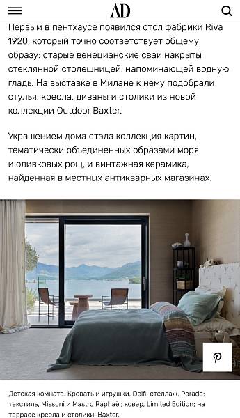 Первым в пентхаусе появился стол фабрики Riva 1920 @riva1920_official, который точно соответствует общему образу: старые венецианские сваи накрыты стеклянной столешницей, напоминающей водную гладь. На выставке в Милане к нему подобрали стулья, кресла, диваны и столики из новой коллекции Outdoor Baxter @baxtermadeinitaly.
