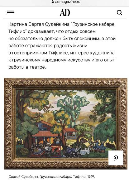 Картина Сергея Судейкина “Грузинское кабаре. Тифлис” доказывает, что отдых совсем не обязательно должен быть спокойным: в этой работе отражаются радость жизни в гостеприимном Тифлисе, интерес художника к грузинскому народному искусству и его опыт работы в театре.