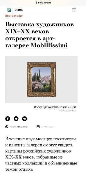 РБК Стиль / Выставка художников XIX–XX веков откроется в арт-галерее Mobillissimi