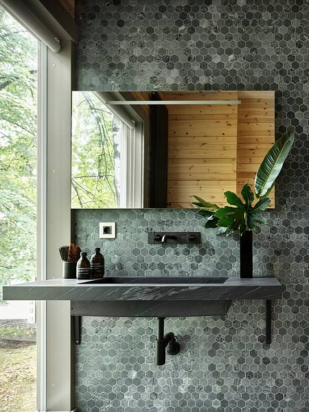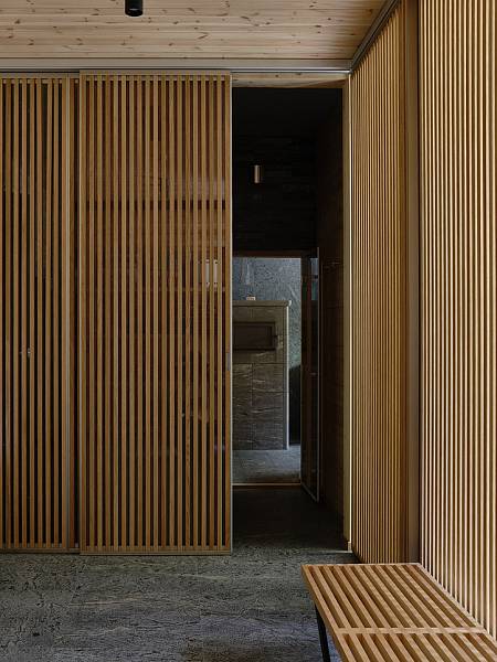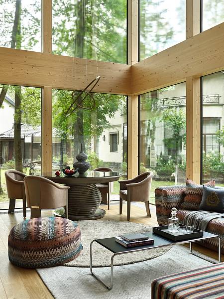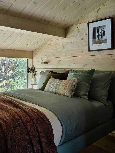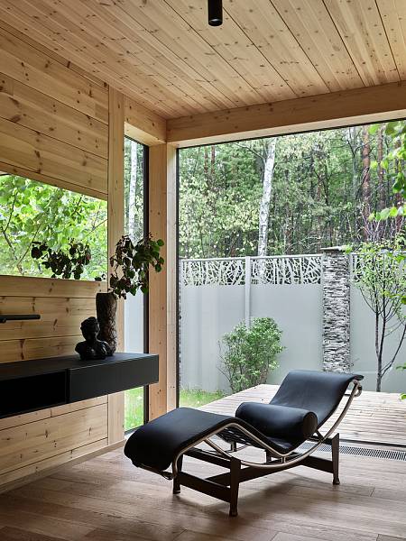Проект этого гостевого дома возник из идеи заказчика о создании собственного спа: вместе с прекрасной русской парной и хамамом в доме расположились две спальни, кабинет, салон для косметических уходов и гостиная, оснащенная кухней и покерным столом. Эскиз дома был создан командой Mobillissimi и реализован компанией Lumi Polar.